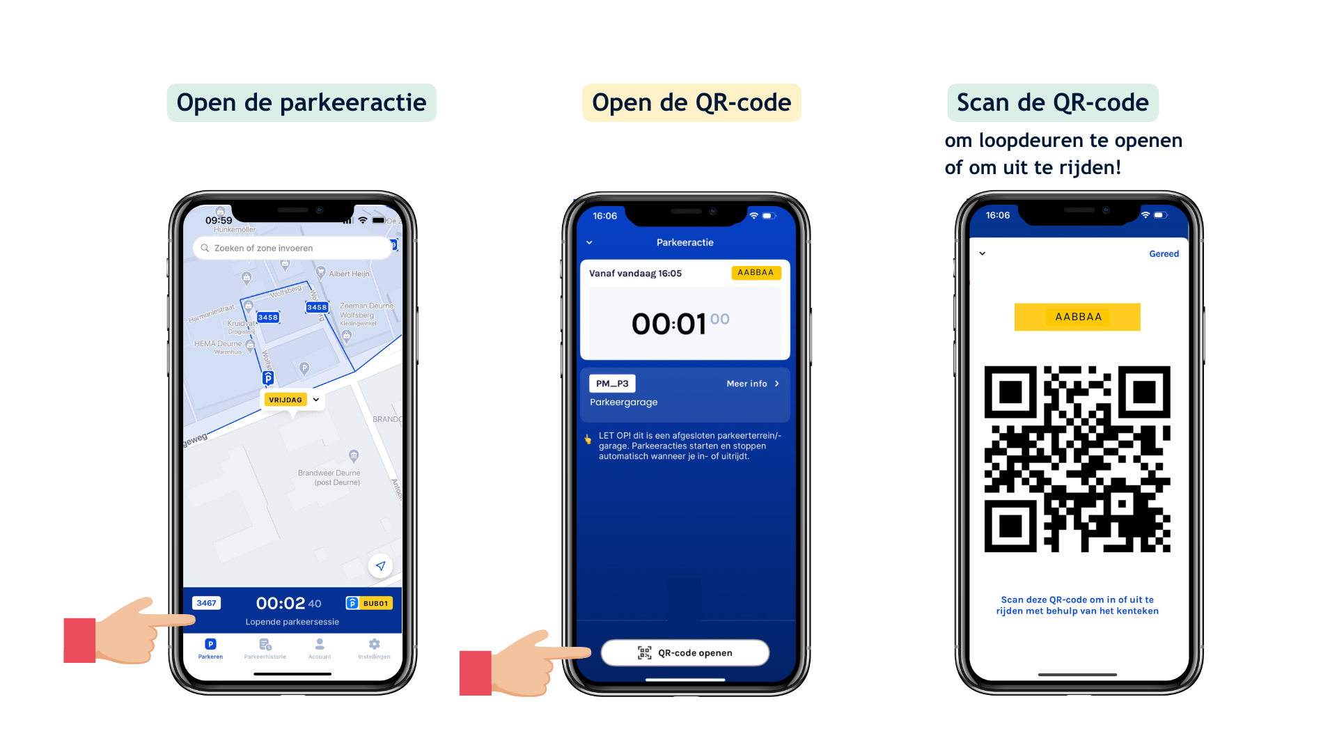 - Uitrijden kan dus altijd: op kenteken of met de QR-code als back-up.